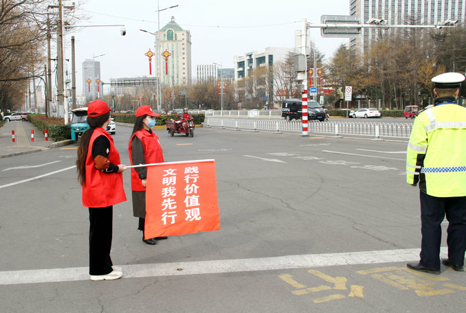 活動(dòng)中,該局志愿者到市區(qū)交通人流密集路口,化身為交通協(xié)管員,積極配合交警開展亂闖紅燈、非機(jī)動(dòng)車逆行、騎車未戴安全頭盔、電動(dòng)車亂停亂放等不良交通現(xiàn)象的整治工作,引導(dǎo)市民摒棄交通陋習(xí)、宣傳文明出行。