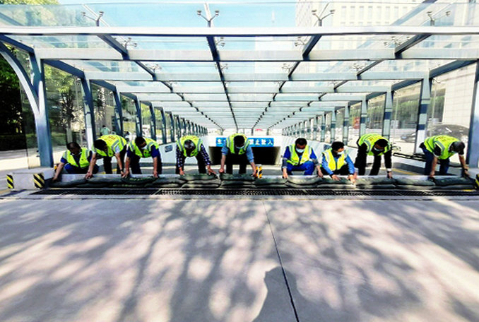 地下空間是易進水被淹的重點防汛部位,搶險人員采用防水擋板和沙袋,對地下車庫出入口及時進行封堵,有效防止雨水流入地庫,避免車輛、地下供配電、二次供水等設施設備被淹。