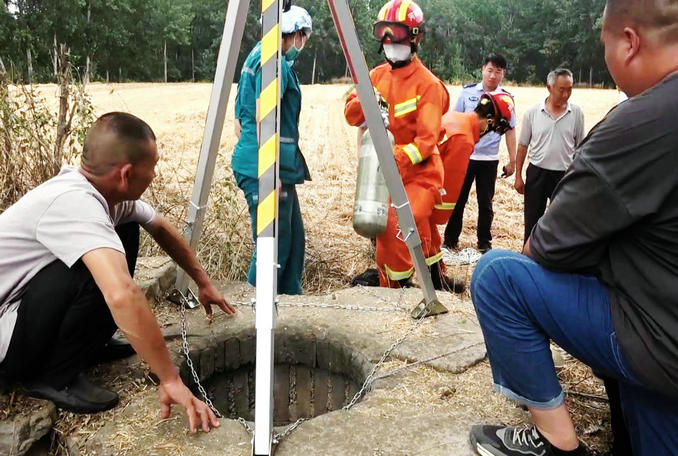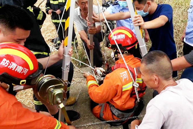 河南襄城:一名男子意外墜入30米深井 消防隊(duì)員緊急趕赴現(xiàn)場救援