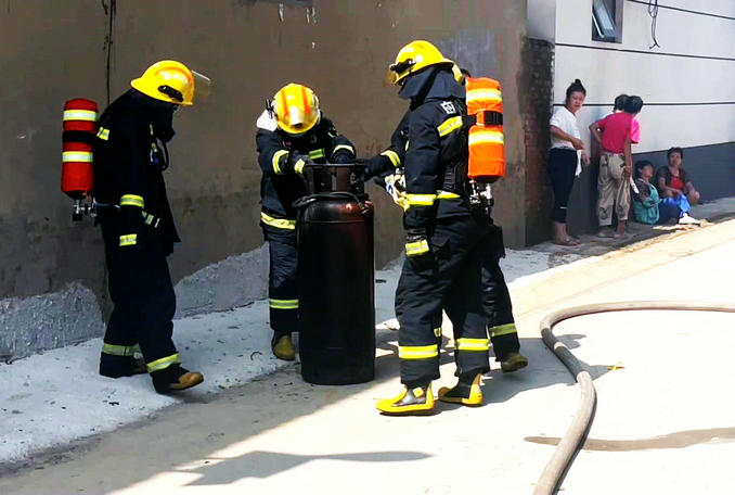 到達(dá)現(xiàn)場后,救援人員發(fā)現(xiàn)火勢處于猛烈階段。經(jīng)確認(rèn)廚房內(nèi)存放有大量液化氣罐,如果不及時(shí)轉(zhuǎn)移,極易引發(fā)爆炸。