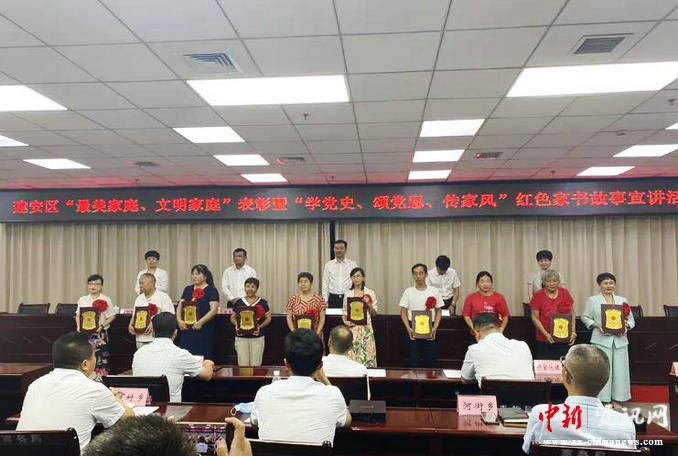 中新河南網(wǎng)6月29日電(梁靖 崔春杰)以德潤心,以文化人。為進(jìn)一步擴(kuò)大“文明家庭”“最美家庭”在文明城市創(chuàng)建中的積極作用和影響力,6月28日,許昌市建安區(qū)文明辦、建安區(qū)婦聯(lián)聯(lián)合開展文明家庭、最美家庭表彰暨“學(xué)黨史、頌黨恩、傳家風(fēng)”紅色家書故事宣講活動(dòng)。建安區(qū)委常委、宣傳部長楚朝輝,建安區(qū)人大副主任李志安,建安區(qū)副區(qū)長米志偉,建安區(qū)政協(xié)副主席馬麗等出席活動(dòng)。