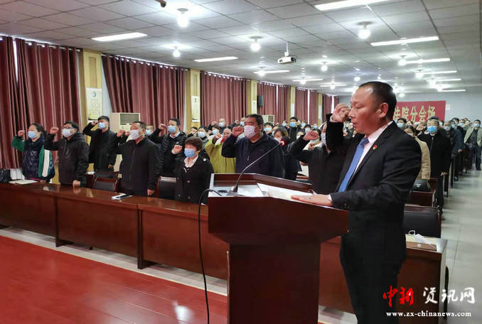 在新任人民陪審員代表王春強的領誓下,全體新任人民陪審員面向國徽,緊握右拳,莊嚴宣讀人民陪審員誓詞:“忠于國家,忠于人民,忠于憲法和法律,依法參加審判活動,忠實履行陪審職責,廉潔誠信,秉公判斷,維護社會公平正義!”