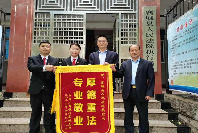 中新河南網(wǎng)5月12日電(梁靖 劉靜)日前,中國工商銀行襄城支行負(fù)責(zé)人冒雨將一面印有“專業(yè)敬業(yè) 厚德重法”的錦旗送到襄城縣人民法院執(zhí)行干警孫紫睿手中,該銀行負(fù)責(zé)人對(duì)執(zhí)行干警在執(zhí)行過程中的良好態(tài)度和有力舉措深表感謝。
