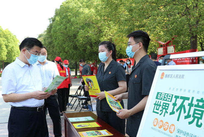 中新河南網(wǎng)6月7日電(梁靖 宋帆)綠水青山就是金山銀山,綠水青山離不開司法護航。在第51個世界環(huán)境日到來之際, 近日,許昌市魏都區(qū)人民法院走進許都廣場,開展“共建清潔美麗世界”為主題的世界環(huán)境日宣傳活動。