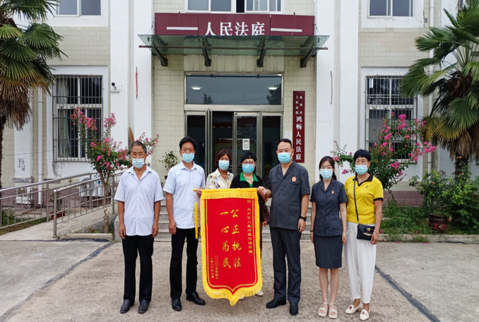 中新河南網(wǎng)7月12日電(梁靖 楚倍倍 李鈺)2022年7月11日上午,天空下著蒙蒙細(xì)雨,5位農(nóng)民工代表受137名工友的委托,將一面錦旗送至禹州市人民法院執(zhí)行局,隨后,又趕赴鴻暢鎮(zhèn)將另一面錦旗送到鴻暢法庭。