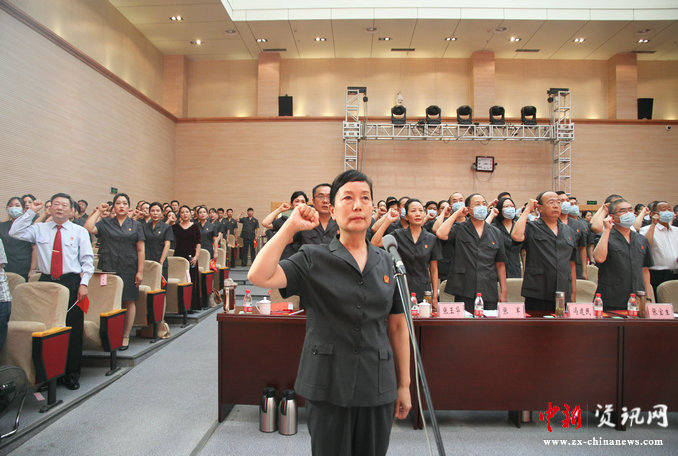 表彰大會(huì)在雄壯的國(guó)歌聲中拉開序幕,全體黨員起立,首先重溫了入黨誓詞。許昌中院黨組書記、院長(zhǎng)韓玉芬領(lǐng)誓,黨員們面對(duì)鮮紅的黨旗緊握右拳,用錚錚誓言表達(dá)對(duì)黨的忠誠(chéng),進(jìn)一步堅(jiān)定初心、明確使命。