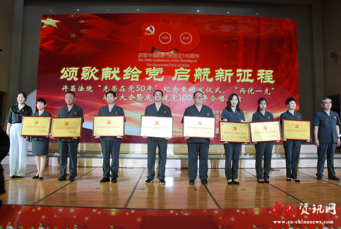 許昌中院舉行“光榮在黨50年”紀(jì)念章頒發(fā)儀式、“兩優(yōu)一先”表彰大會(huì)暨合唱展演