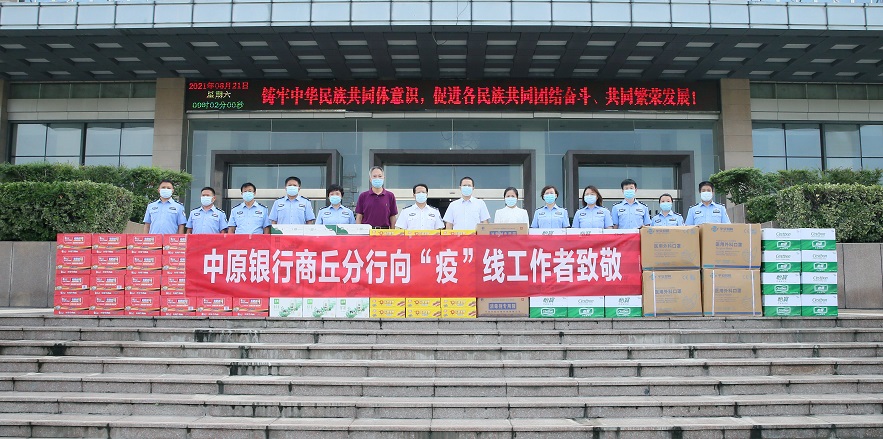 中新河南網商丘8月21日電 (許永強 通訊員 宋京輝)為以實際行動支援疫情防控工作,8月21日上午,中原銀行商丘分行利用周末時間積極開展走訪慰問和捐贈抗疫物資活動,展現(xiàn)企業(yè)社會責任擔當。