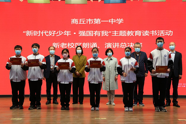 中新河南網(wǎng)商丘4月14日電 (許永強(qiáng))4月12日,商丘市第一中學(xué)“新時代好少年 強(qiáng)國有我”主題教育讀書活動朗誦演講總決賽在新校區(qū)舉行,校委會領(lǐng)導(dǎo)參加了此次活動。