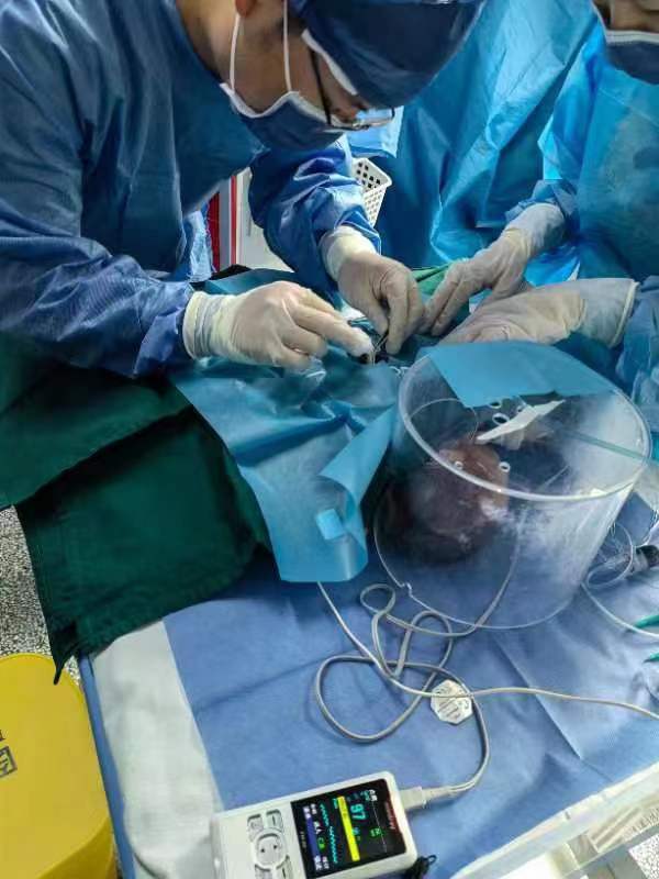 在科主任、護(hù)士長(zhǎng)的積極引導(dǎo)下,兒科快速組建了臍靜脈置管小組,由北京兒童醫(yī)院進(jìn)修歸來(lái)的王威醫(yī)生擔(dān)任組長(zhǎng),王威在進(jìn)修期間有多次參與臍靜脈置管的成功經(jīng)歷,此次技術(shù)開展前更是做了充分的理論、操練準(zhǔn)備工作;護(hù)士長(zhǎng)王琳在操作前,多方進(jìn)行協(xié)調(diào)聯(lián)系,在供應(yīng)室老師的幫助下,完美的配備了目前最先進(jìn)的新生兒臍靜脈置管器械包;操作期間,醫(yī)政科科長(zhǎng)黃灝主任醫(yī)師親臨現(xiàn)場(chǎng)指導(dǎo),嚴(yán)格把控操作技術(shù)規(guī)范與無(wú)菌要求,更有放射科張家碩技師床旁DR現(xiàn)場(chǎng)待命;這陣仗只為開通一條危重新生兒的生命通道。
