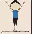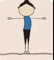 站立,兩臂向上甩起,至頭部上方時(shí)屈肘,雙手搭肩,然后兩臂伸直,往下甩,放在體側(cè)。