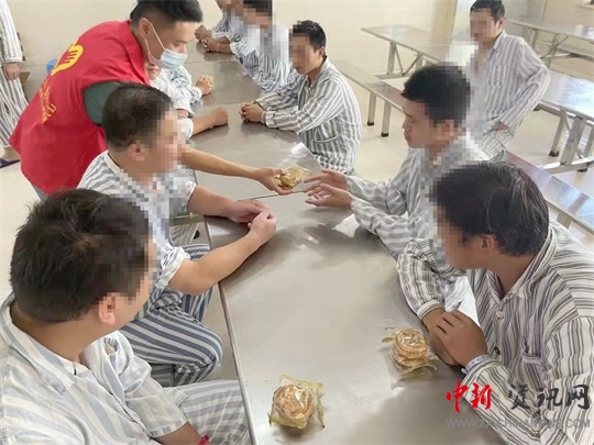 中新河南網(wǎng)駐馬店9月21日電(通訊員 王杏 周甜)金秋送爽,丹桂飄香。一年一度的中秋佳節(jié),萬家團圓,共享天倫,但精神病患者因其疾病特點,治療周期長,很多患者住院時間跨度較大,因病情尚未穩(wěn)定而不能回家過節(jié),為了能讓患者感受到醫(yī)院大家庭的溫情和關(guān)懷,度過一個溫馨的中秋,市第二人民醫(yī)院老年精神科男病區(qū)工作人員為住院患者送上了精美的月餅和新鮮的蘋果,讓患者感受到了醫(yī)院的關(guān)愛和溫暖。