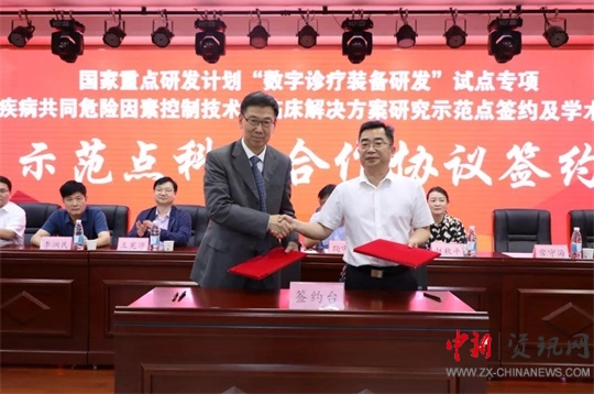 新蔡縣人民醫(yī)院被確定為國家重點研發(fā)計劃“數(shù)字診療裝備研發(fā)”試點專項課題二示范點,高傳玉代表鄭州大學(xué)華中阜外醫(yī)院、國家心血管中心華中分中心,就試點專項課題相關(guān)事宜與新蔡縣人民醫(yī)院黨總支書記、院長常守海進行簽約,并向新蔡縣人民醫(yī)院捐贈便攜式彩色多普勒超聲診斷儀等多臺件設(shè)備和經(jīng)典醫(yī)學(xué)專著。