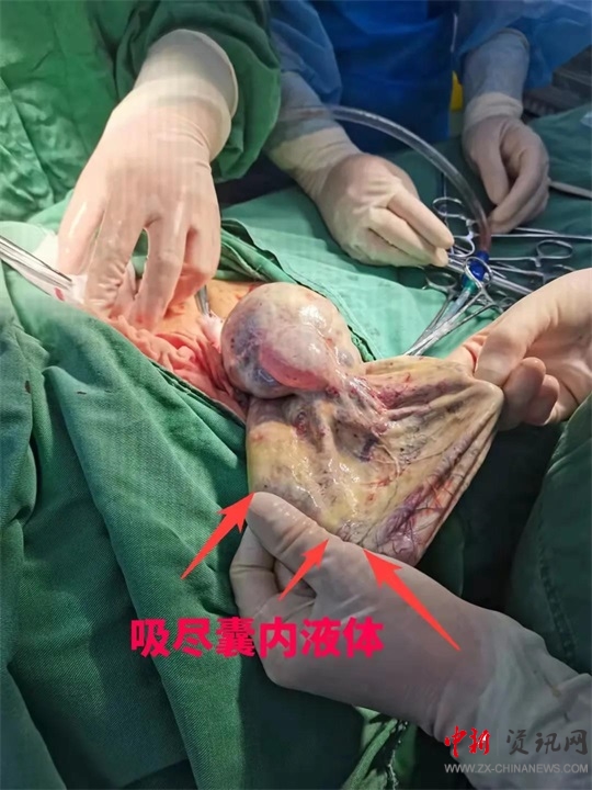 在做好充分的準(zhǔn)備后,由李愛麗主任主刀,在手術(shù)室和病理科的共同配合下為冀奶奶進(jìn)行手術(shù),術(shù)中可見右側(cè)卵巢一大小約16x10cm囊腫,蒂部扭轉(zhuǎn)2周,囊腫包膜缺血水腫,左側(cè)卵巢體積增大,有一5x6cm囊腫。