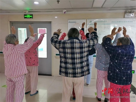 在女病區(qū),科室醫(yī)護(hù)人員一大早就來到科室,為老年患者做基礎(chǔ)護(hù)理,協(xié)助她們穿衣,給她們梳頭發(fā)、喂飯,飯后帶她們做健身操,活動(dòng)身體,讓她們感受到如家般的溫暖。