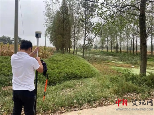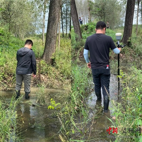 平輿縣自然資源局土地勘測所對老王崗鄉(xiāng)河道進行測量放樣