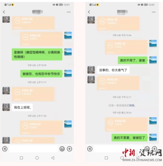 事情還要從兩年前說起,患者張某因分離轉(zhuǎn)換障礙入院,受到壓力或應(yīng)激事件后出現(xiàn)哭鬧、喊叫,間歇性發(fā)作,一直四處求醫(yī),效果不佳,經(jīng)朋友介紹來到駐馬店第二人民醫(yī)院精神九科治療。在郭俊峰醫(yī)生精心治療和護(hù)理人員無微不至的照料下,患者張某病情很快好轉(zhuǎn)并穩(wěn)定下來。出院后郭俊峰醫(yī)生定期隨訪,叮囑患者定期復(fù)查,根據(jù)治療效果及時做出必要的調(diào)整。通過心理治療和藥物治療的方式,來幫助患者改善人際關(guān)系,極大地提高了患者的社會適應(yīng)能力。患者家屬為了表示謝意,特地在中秋節(jié)來臨之際,給郭醫(yī)生發(fā)了500塊錢過節(jié)費(fèi),郭醫(yī)生深受感動,多次退還給患者,拒收紅包。
