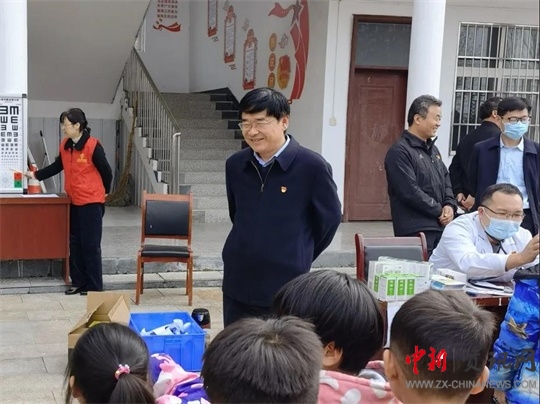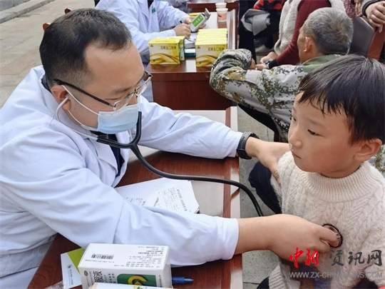 醫(yī)務(wù)人員為譚園村小學(xué)生體檢
