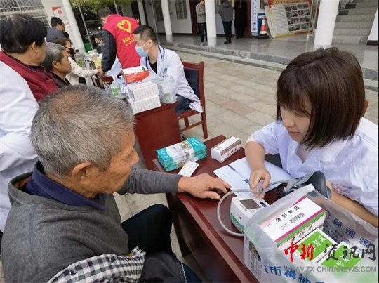 醫(yī)務(wù)人員為譚園村村民檢測(cè)血糖