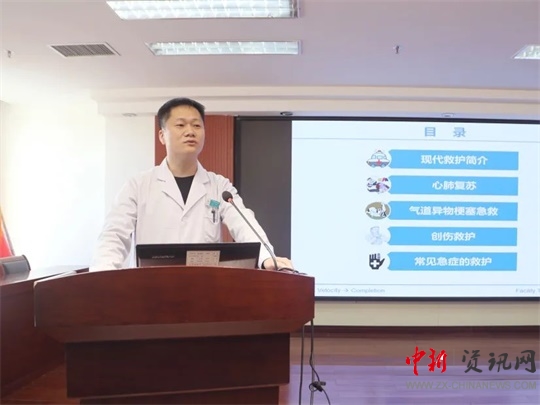 周繼鋒副主任結(jié)合現(xiàn)代救護、心肺復蘇、氣道異物梗阻等進行了急診急救知識技能培訓。
