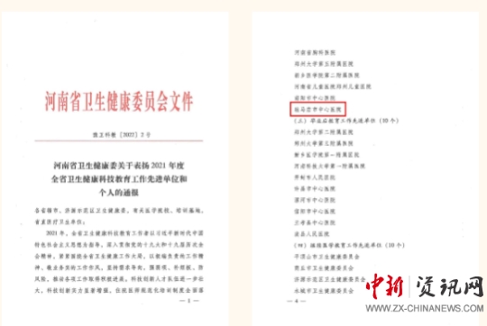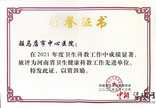 駐馬店市中心醫(yī)院榮獲“河南省衛(wèi)生健康科教工作先進(jìn)單位”稱號