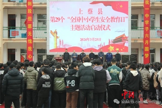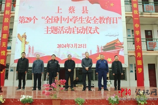中新河南網(wǎng)駐馬店3月26日(通訊員:劉季春)3月25日上午,由上蔡縣政法委、教育局、應(yīng)急管理局、公安局、消防救援大隊聯(lián)合組織的上蔡縣第29個“全國中小學生安全教育日”主題活動啟動儀式在上蔡一中明德樓前舉行。出席儀式的領(lǐng)導(dǎo)有縣政法委副書記田軍同志,縣教育局黨委書記、局長邱應(yīng)征同志,縣教育局副局長萬心得同志,縣應(yīng)急管理局主任科員張啟云同志,縣公安局副政委段獻華同志,縣消防救援大隊大隊長于樹彬同志。全縣城區(qū)四個街道辦事處中心學校安全辦主任、局直部分學校分管安全副職及上蔡一中部分師生代表參加儀式。