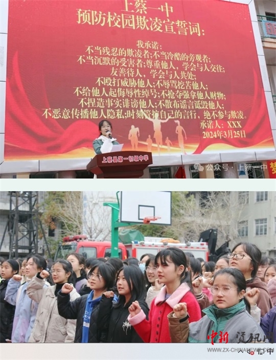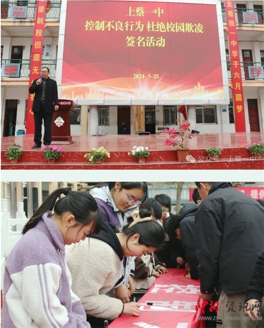 上蔡一中學生進行了消防應(yīng)急疏散演練、預(yù)防校園欺凌宣誓及簽名活動。