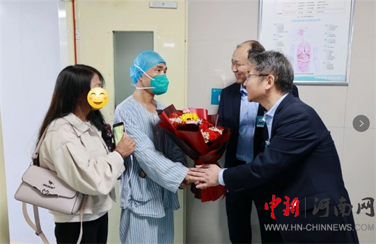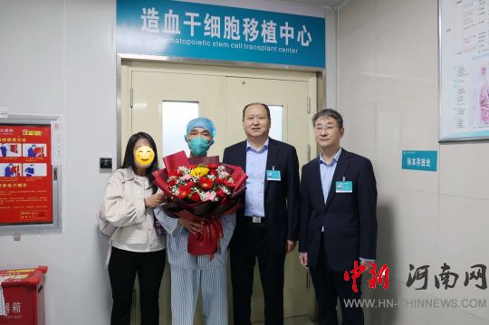 中新河南網(wǎng)駐馬店11月4日(通訊員:吳靖 郭力 陳思妤 張雪凝) “出來了,出來了!”10月29日上午8:17,在駐馬店市中心醫(yī)院,張先生步履穩(wěn)健地走出造血干細(xì)胞移植中心大門的這一刻,門外等候的眾人一陣激動。
