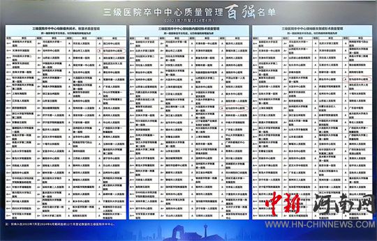 大會公布了三級醫(yī)院卒中中心質(zhì)量管理百強(qiáng)名單,駐馬店市中心醫(yī)院在2024年全國三級卒中中心年度綜合排名、靜脈溶栓、動脈取栓三項(xiàng)中均為A++序列(第1-25名),在全國三級卒中中心年度動脈瘤栓塞或夾閉、頸動脈內(nèi)膜剝脫、頸動脈支架三項(xiàng)中均為A序列(第51-100名)。