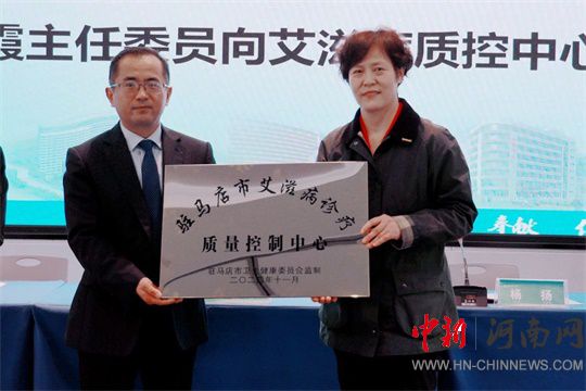 趙清霞為駐馬店市艾滋病診療質(zhì)量控制中心授牌。