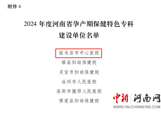 中新河南網(wǎng)駐馬店1月6日(通訊員:吳靖 張子夏 李沐佳)近日,河南省衛(wèi)生健康委婦幼處正式發(fā)文,公布2024年度河南省孕產(chǎn)期保健特色專科建設(shè)單位名單,駐馬店市中心醫(yī)院憑借其在孕產(chǎn)期保健領(lǐng)域的卓越表現(xiàn)和專業(yè)實(shí)力,成功獲批“河南省孕產(chǎn)期保健特色?平ㄔO(shè)單位”,這一榮譽(yù)標(biāo)志著駐馬店市中心醫(yī)院在孕產(chǎn)期保健服務(wù)方面達(dá)到了省級(jí)水平。
