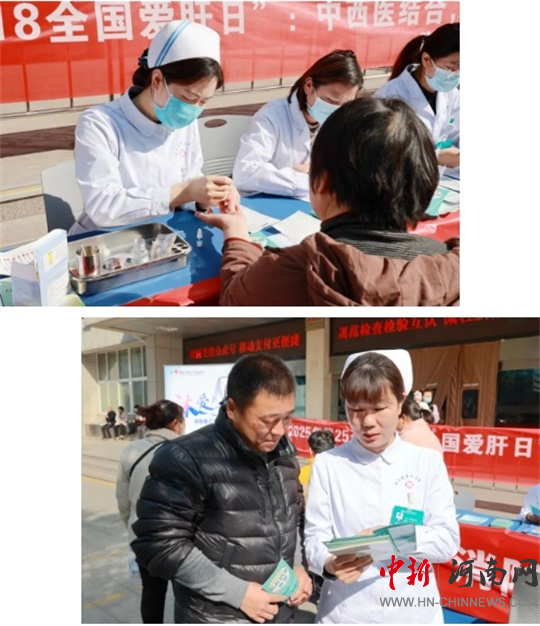 中新河南網(wǎng)駐馬店3月18日(通訊員:吳靖 蔡峻嶺)2025年3月18日是第25個(gè)全國愛肝日。今年的主題是“中西醫(yī)結(jié)合,逆轉(zhuǎn)肝硬化”。為提高全社會(huì)對(duì)中西醫(yī)結(jié)合防治慢性肝炎肝纖維化的認(rèn)知,推動(dòng)肝病防治健康教育、傳播預(yù)防肝病科普知識(shí),3月18日,駐馬店市中心醫(yī)院感染性疾病科在醫(yī)院中心院區(qū)門診樓前開展全國愛肝日義診活動(dòng)。