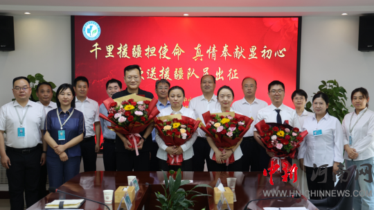 最后,醫(yī)院領(lǐng)導(dǎo)向4位援疆隊員送上鮮花和祝福,并集體合影留念。