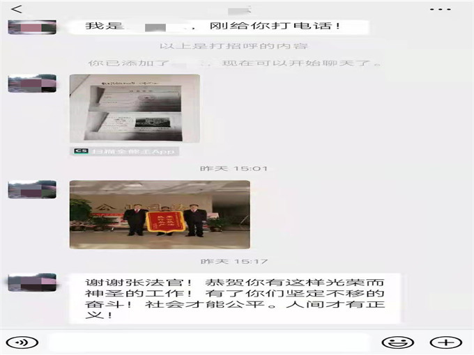 中新河南網(wǎng)11月15日電(李克選 付倩 王佳琪)“謝謝張法官!恭賀你有這樣光榮而神圣的工作!有了你們堅(jiān)定不移的奮斗,社會(huì)才會(huì)公平,人間才有正義!”這是一名民間借貸糾紛案件申請(qǐng)執(zhí)行人在收到案件執(zhí)行款后給高新區(qū)法院執(zhí)行局干警發(fā)送的消息。
