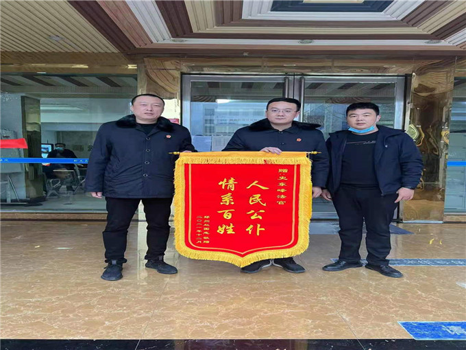 中新河南網(wǎng)12月15日電(李克選 魏錁 張冠)12月15日上午,買受人趙某將兩面寫有“人民公仆 情系百姓 ”和“懷愛民之心 辦利民之事 ”的錦旗,送到南陽市臥龍區(qū)人民法院執(zhí)行干警和拍成法輔機(jī)構(gòu)負(fù)責(zé)人手中,為臥龍法院和拍輔機(jī)構(gòu)在其購買房產(chǎn)過程中,高效執(zhí)行、一心為民的作風(fēng)表示由衷感謝。