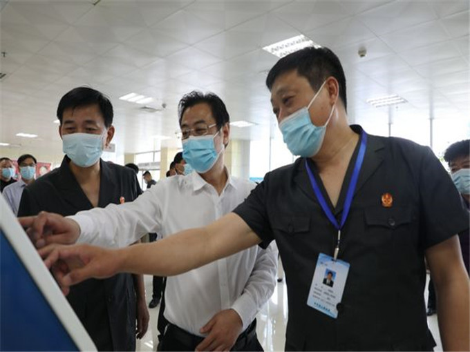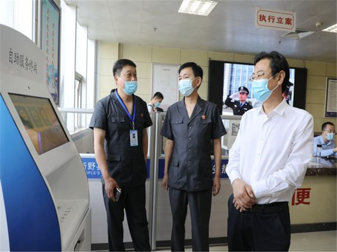 視察組一行首先來到新野法院訴訟服務(wù)中心查看了訴訟服務(wù)窗口、法律援助窗口、訴調(diào)對接窗口、執(zhí)行立案窗口等辦公場所,郭恩建主任體驗(yàn)操作了訴訟服務(wù)自助平臺(tái)、自助服務(wù)終端系統(tǒng),聽取了新野法院訴訟服務(wù)工作匯報(bào)。接著,視察組一行來到執(zhí)行接待中心、執(zhí)行指揮中心,實(shí)地察看了執(zhí)行工作硬件建設(shè)情況,詳細(xì)了解執(zhí)行干警辦公辦案情況,對執(zhí)行案件立案程序、案件監(jiān)管流程、執(zhí)行質(zhì)效等情況進(jìn)行詳細(xì)詢問。隨后,視察組一行在講解員的帶領(lǐng)下參觀了新野法治文化展館、青少年法治教育中心、院史館和黨建館,對新野法院立足縣域治理實(shí)際,傳承法律文化底蘊(yùn),加強(qiáng)法治文化建設(shè)等方面作出的成績給予充分肯定。