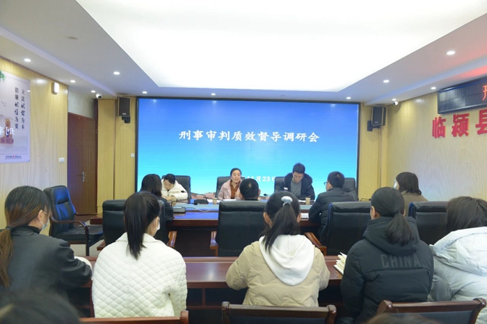 會上,朱瓊法官對臨潁縣法院刑事審判隊伍人員調配和隊伍建設工作予以充分肯定的同時,提出持續(xù)強化人員管理,理清職責定位,將員額法官從程序性、事務性的工作中解脫出來,專注案件審判的工作工作建議。同時對該院各項刑事審判質效指標數(shù)據(jù)進行了全面評析,指出問題和癥結所在,并提出針對性解決措施:一是要加快觀念轉變,在注重審判效率的同時更加注重審判質量,質效并行。二是一審是整個審判的起點和基石,一定要重視對案件事實的查明和證據(jù)的分析采信工作,牢牢把握住事實認定和證據(jù)采信的第一關。三是必須做好裁判文書說理和判后答疑工作,釋明法律規(guī)定,講清裁判邏輯,提高案件當事人對于裁判結果的認可和接受度,從而服判息訴。四是充分發(fā)揮審管辦的工作職能,加強扣除和延長審限的管理。五是做好生效判決執(zhí)行和卷宗歸檔整理工作,站好最后一班崗。