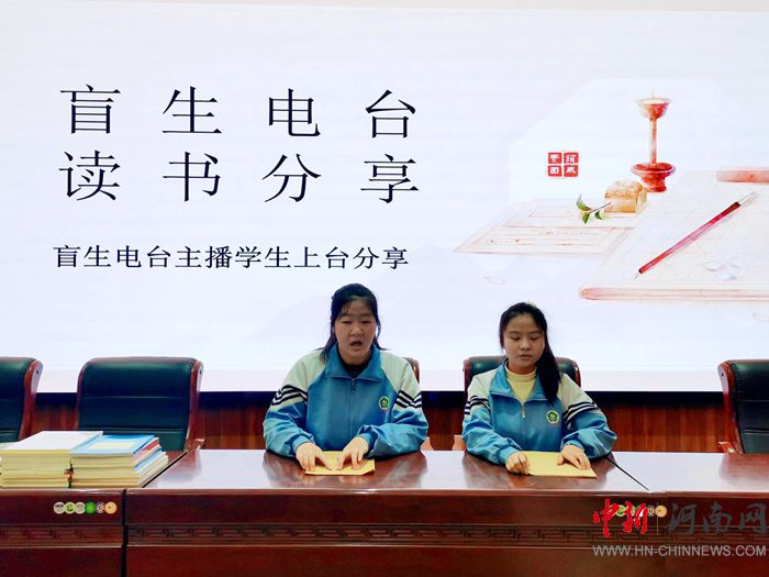 在“盲生電臺(tái),讀書(shū)分享”環(huán)節(jié),2名學(xué)生自信地走上舞臺(tái),結(jié)合自身閱讀經(jīng)歷,分享書(shū)中的精彩內(nèi)容與閱讀感悟。她們朗朗的讀書(shū)聲宛如夜鶯在月下婉轉(zhuǎn)啼鳴,空靈而清越,傳遞著真摯的情感、深刻的見(jiàn)解,引發(fā)了現(xiàn)場(chǎng)師生的強(qiáng)烈共鳴,將活動(dòng)的書(shū)香氛圍再次升華。