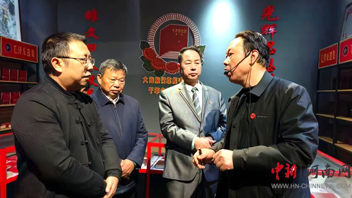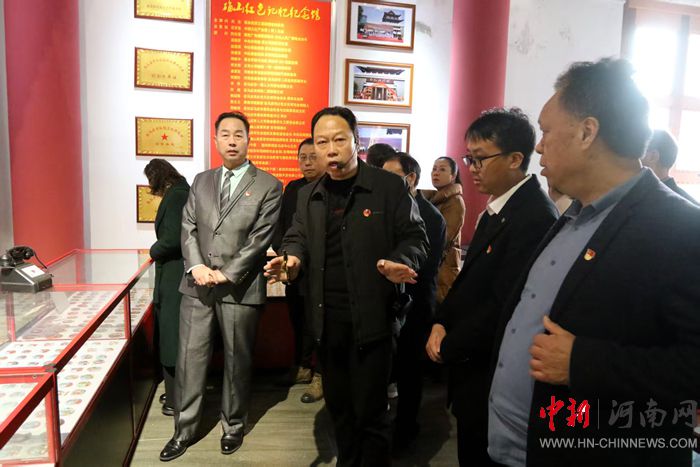 當(dāng)日下午,馬繼民、劉軍祥、鄒虹、雷禮雅、張樹(shù)全、李輝義、喬新建、付華等一行,懷著對(duì)先輩們的崇敬之情,齊聚河南確山紅色記憶館,認(rèn)真聽(tīng)取館長(zhǎng)姚真保的情況介紹,駐足凝視每一件館藏。紅色記憶館內(nèi),一件件飽經(jīng)歲月洗禮的歷史文物、一幅幅生動(dòng)鮮活的珍貴照片、一段段感人至深的英勇事跡,全方位、多角度地展現(xiàn)了確山地區(qū)波瀾壯闊的革命歷程和先烈們?yōu)閲?guó)家獨(dú)立、民族解放所做出的巨大貢獻(xiàn)。