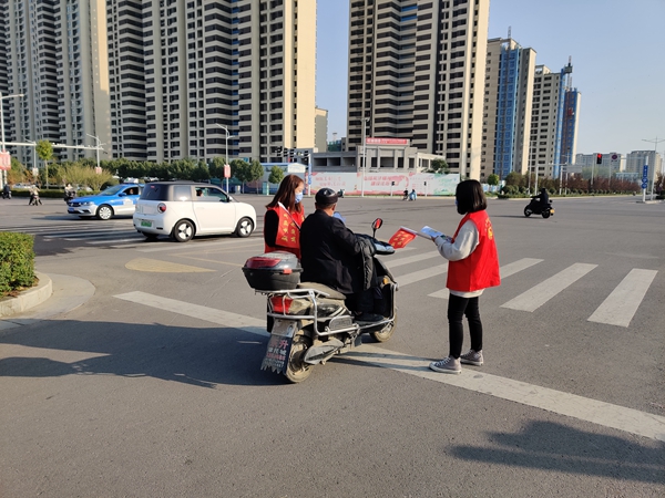 中新河南網(wǎng)(記者 胡夢(mèng)瑤 通訊員 馬松昭 張海林 張艷芬)“我是一名黨員,要起帶頭作用,今后一定做交通安全的宣傳者、踐行者,用實(shí)際行動(dòng)影響和帶動(dòng)身邊的親人、朋友遵守交規(guī),文明出行,做一名文明守法的騎行人員。”11月7日上午,在魯山縣魯平大道與花園路交叉口紅綠燈處開(kāi)展志愿者宣傳服務(wù)的城南新區(qū)工作人員黃少峰說(shuō)。