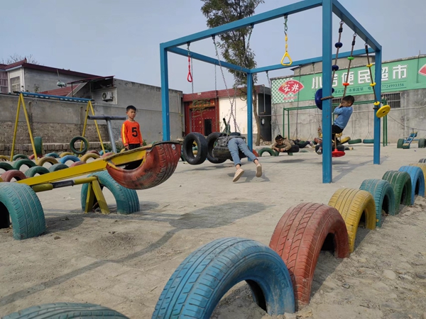 “記得最初這個角落是一塊空閑地,時間一長總是雜草叢生,不僅難打理,而且非常影響村上的人居環(huán)境。”想出這個“金點(diǎn)子”創(chuàng)意的是該鎮(zhèn)任寨村第一書記劉歡歡,她高興地介紹道,“咱們村上開大車的師傅多,聽說這個創(chuàng)意后,游樂場需要的廢舊輪胎一下子就湊齊了,考慮到下雨地面泥濘,村干部們又抽空安排了地面硬化,游樂場能這么快打造成功完全是干群齊心協(xié)力的成果。”