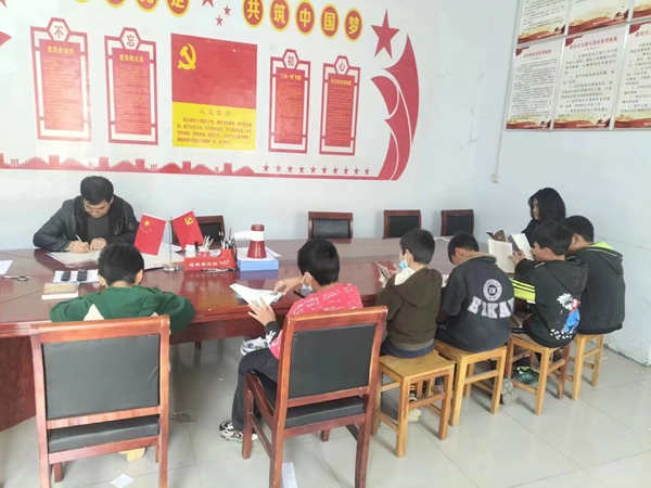 書屋外面,老人們悠閑的一邊喝茶,一邊下棋;讀書讀累的孩子們來到廣場打籃球、做游戲,一幅祥和、溫馨的畫面在美麗鄉(xiāng)村鋪展開來。
