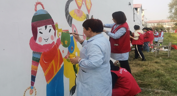 自11月9日以來,為了更好地完成作品,老師們一刻不停地定位、打格、勾圖、填色,甚至放棄中午的休息時間,還有老師為了保證作品效果,趁著天黑提前驅(qū)車近40里來到村里,借助投影儀勾勒輪廓。為做好老師們的后勤保障,第一書記更是忙前忙后,一刻不停歇,在大家的共同努力下,預(yù)計三天完成的16幅作品,只用了兩天時間就高質(zhì)量完成。雖然初冬的天氣帶著陣陣涼意,但看著一幅幅精美的畫作,大家的心里都是熱乎乎的,在場的老師紛紛表示:如果有機會還會積極參與類似的活動。教體局王東林局長也表示:群眾們對這些作品的喜愛,是對所有參與者的辛苦付出的肯定,今后還會組織這樣的活動,把推動五星支部創(chuàng)建、助力鄉(xiāng)村振興工作落到實處。(完)