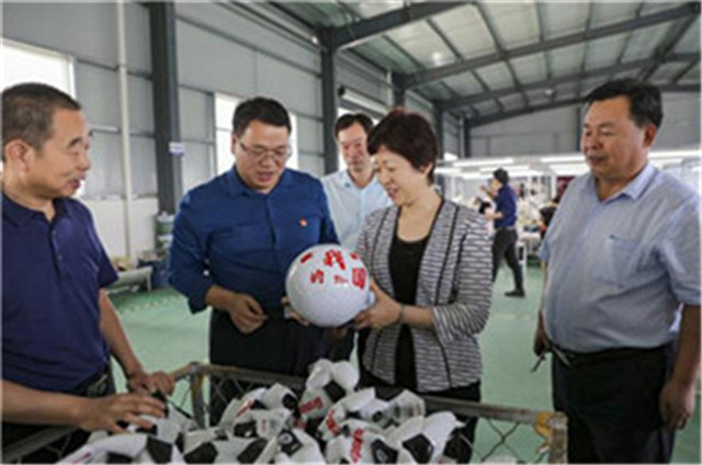 脫貧摘帽不是終點(diǎn),而是新的起點(diǎn)。來到肖營村產(chǎn)業(yè)園時,生產(chǎn)體育器材的流水線上,村民們一字排開做著自己的工作,流水線的一頭是各種布料,另一頭就是五顏六色的足球、手球成品?粗|(zhì)地上乘、外觀靚麗的足球,不敢相信這個小小的村辦企業(yè),居然能生產(chǎn)出如此高水平的體育用品。據(jù)創(chuàng)業(yè)園負(fù)責(zé)人介紹,他們的體育產(chǎn)品銷往全國各地,還為一些名牌企業(yè)代加工部分成品和半成品,年銷售額可達(dá)近千萬元。
