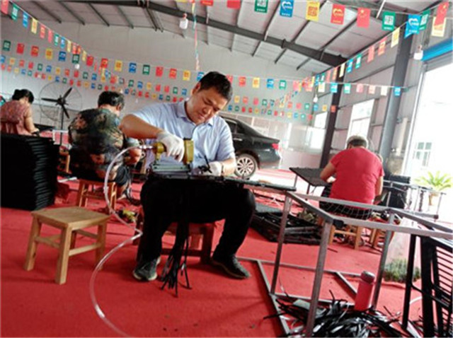 在另一個藤編車間,由于實(shí)行的是訂單化計(jì)件生產(chǎn)機(jī)制,經(jīng)過培訓(xùn)的村民們,甚至可以把原料拿回家,利用閑暇時間藤編各類躺椅和家具。隔壁的廠房則是過塑印花車間,承接各類裝飾、廣告印制,也安置了不少村民就業(yè)。這幾個生產(chǎn)車間,集中體現(xiàn)了各級政府對肖營村產(chǎn)業(yè)扶貧的優(yōu)異成果,真正把扶貧模式由“輸血”變?yōu)榱?ldquo;造血”。