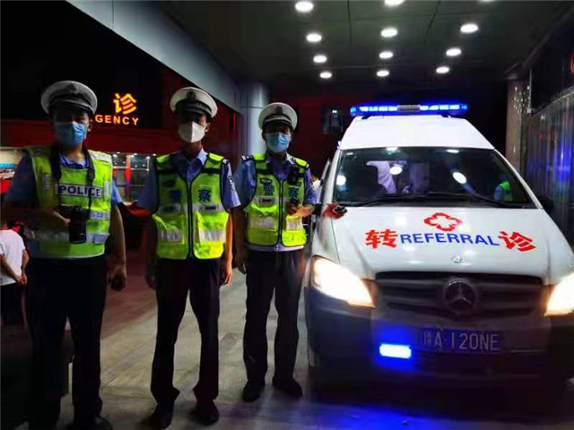 閃爍的警燈劃破了黑黑的夜空,清脆的警笛提醒著前方車輛緊急讓行。為了保障車隊(duì)通行平安,執(zhí)行任務(wù)的每一位民警輔警都瞪大了警惕的眼睛;為了最大程度減小對(duì)救護(hù)車內(nèi)患兒的驚擾,負(fù)責(zé)開(kāi)道的民警把警笛的聲音調(diào)到了最;為了爭(zhēng)取更多的搶救時(shí)間,救護(hù)車的速度開(kāi)到了120公里/時(shí)……