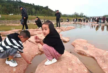 “《陸渾水庫》中記錄的第三紀(jì)紅色巖層應(yīng)該就是現(xiàn)在大家看到的紅色石頭。”河南省地礦局第一地質(zhì)礦產(chǎn)調(diào)查院教授級高級工程師王喜恒說,通過分析,這片石頭屬于第三系砂礫巖,距今約5000萬年,嚴(yán)格來說不屬于丹霞地貌,為丹霞地貌雛形。
