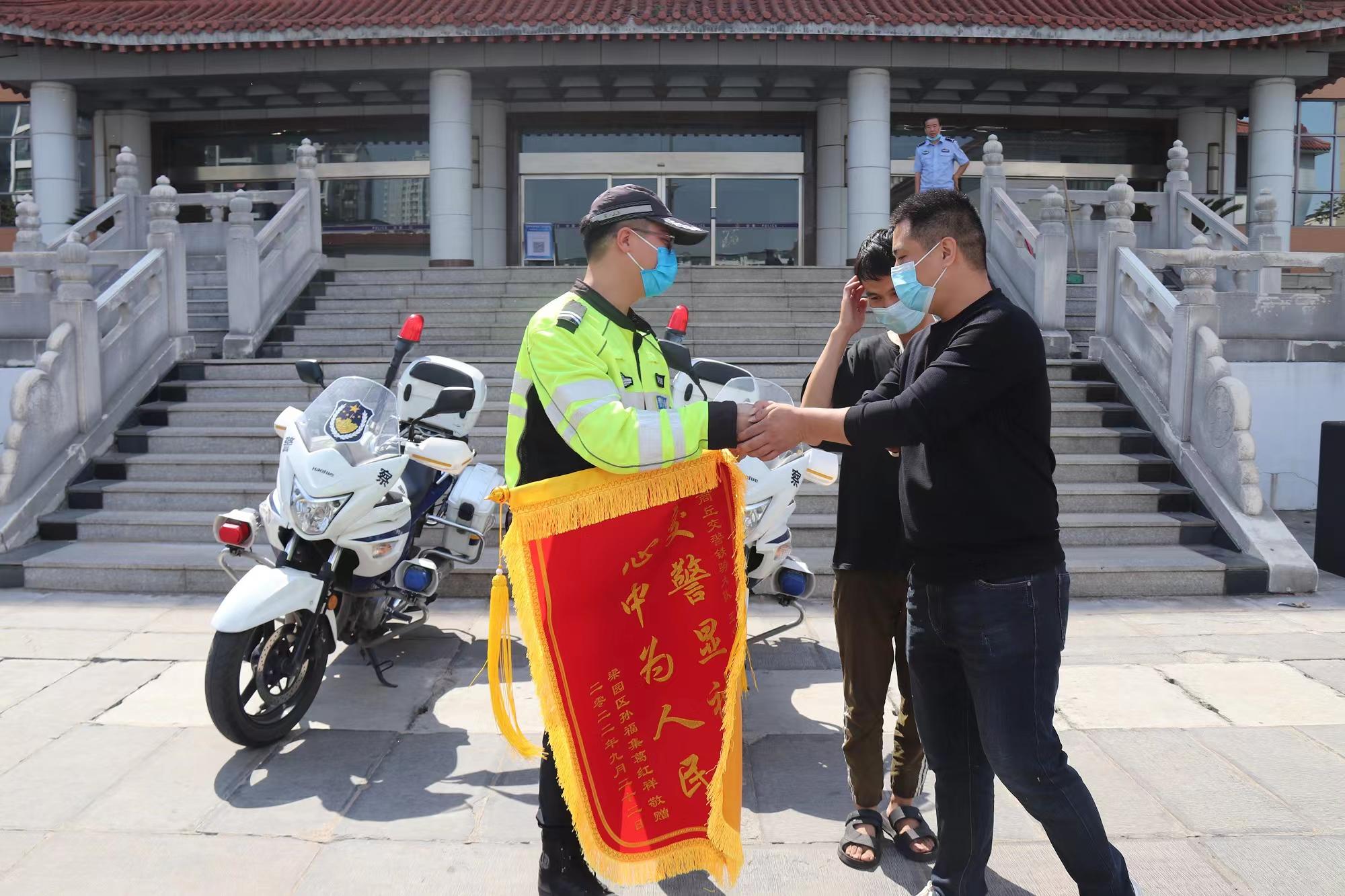 商丘交警鐵騎大隊(duì)救助顯真情市民致謝送錦旗