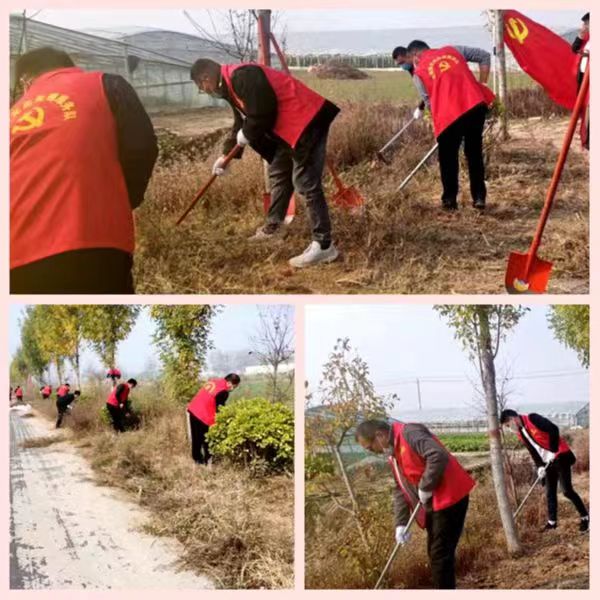 活動(dòng)現(xiàn)場(chǎng),一面面黨旗迎風(fēng)飄揚(yáng)。鎮(zhèn)村干部身穿“紅馬甲”,手拿鐵锨、鋤頭等環(huán)衛(wèi)工具,重點(diǎn)對(duì)鎮(zhèn)區(qū)南環(huán)路等主干道沿線兩側(cè)的雜草、秸稈及溝渠內(nèi)的白色垃圾進(jìn)行清理,對(duì)垃圾堆進(jìn)行集中清除;顒(dòng)中,大家不怕苦,不怕累,干得熱火朝天.......。