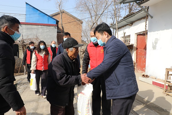活動(dòng)中,丁建濤一行深入到賈寨鎮(zhèn)保衛(wèi)村、褚莊村23戶幫扶的脫貧戶、監(jiān)測(cè)農(nóng)戶家中,親切地拉家常,詢問(wèn)他們的生活狀況和存在困難,并送去米、面、油、牛奶等慰問(wèn)品,叮囑他們注意身體,并送上了誠(chéng)摯的節(jié)日問(wèn)候和祝福。